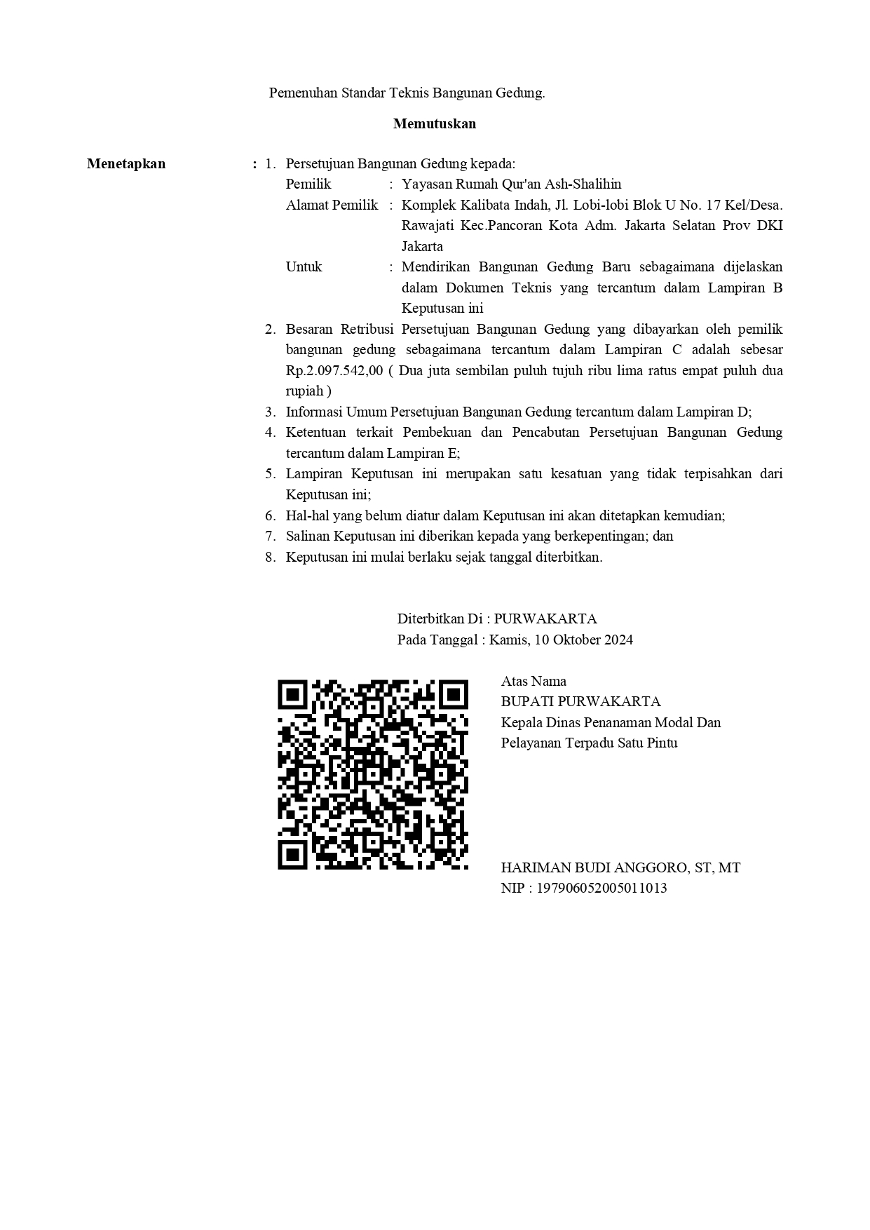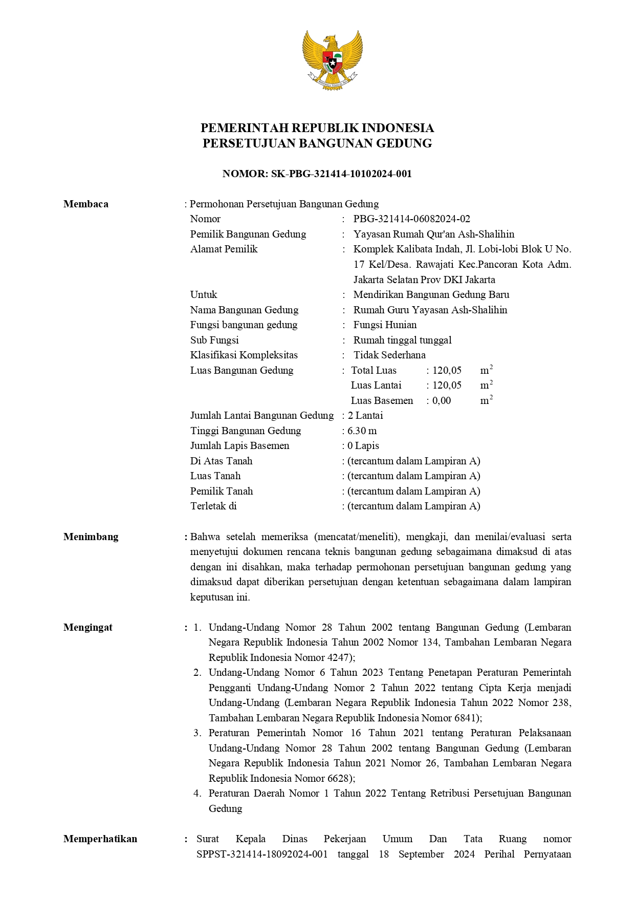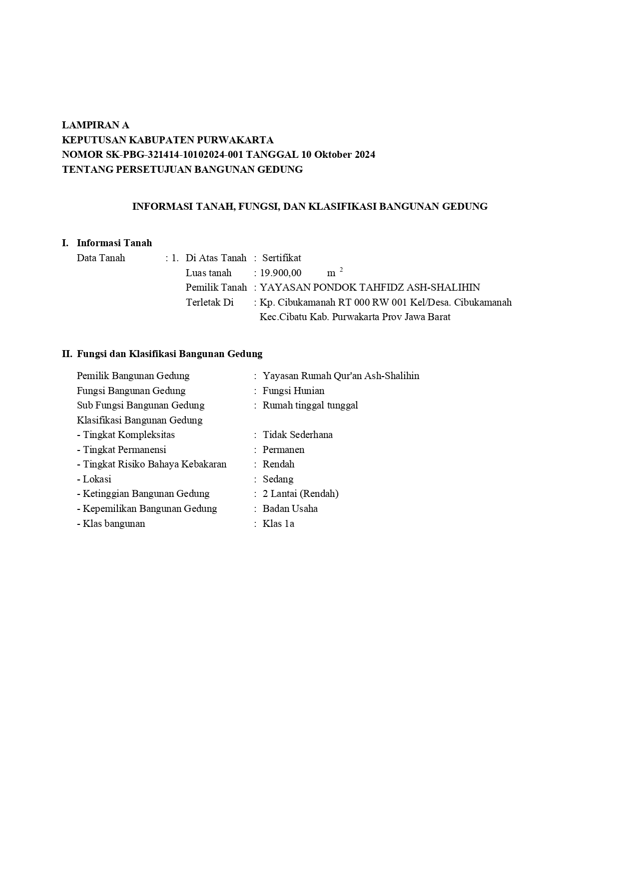 PGB (Persetujuan Bangunan Gedung) Pondok Tahfidz Ash-Shalihin Purwakarta