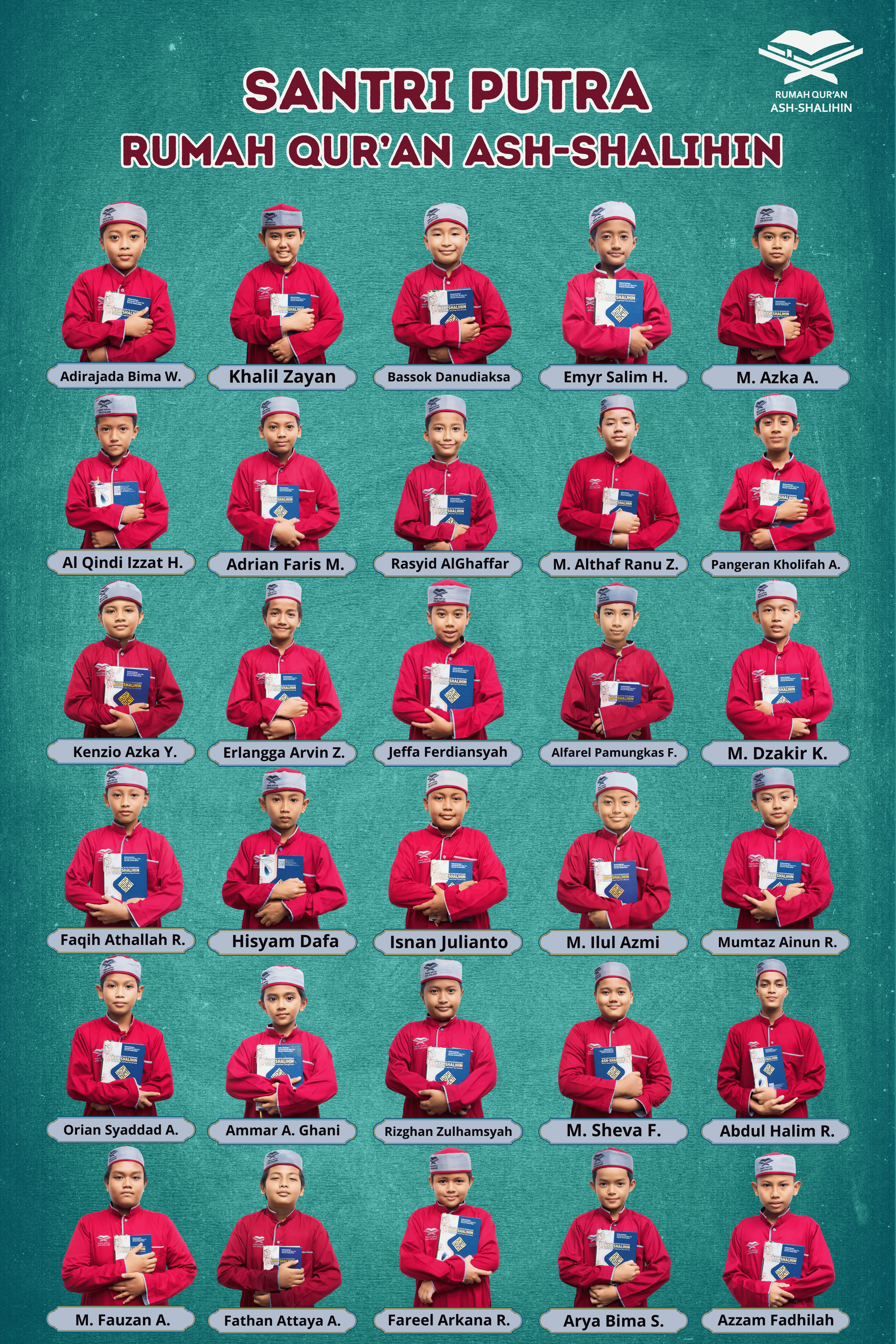 Di tahun ajaran 2024-2025, santri Rumah Quran Ash-Shalihin berjumlah 116 Santri, 60 santri putra dan 56 santri putri.